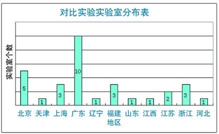 共有31家實驗室參加了本次比對試驗,從下圖中可以看出北京、上海、廣東、福建以及浙江的實驗室數量較多,符合目前RoHS檢測領域較活躍的區域分布。