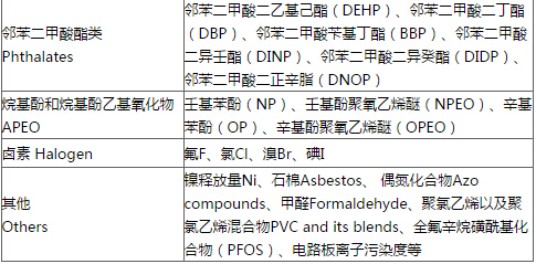 新增附錄Ⅲ,列出優先評估的物質,將采取與REACH 法規相同的評估機制,將來可能納入管控范圍,包括: