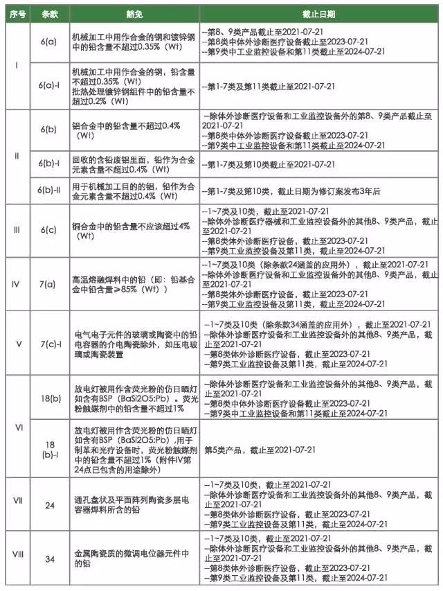 2017年9月19日,歐盟委員會(huì)就RoHS指令附件III中關(guān)于鉛的八項(xiàng)豁免提案發(fā)起了公眾咨詢(xún),利益相關(guān)方可在2017年10月17日之前發(fā)表意見(jiàn)。