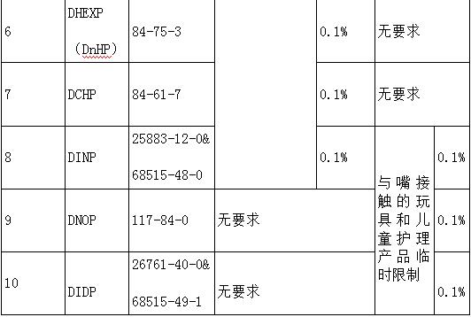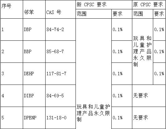 3、 新增了四項鄰苯二甲酸酯(DIBPDPENPDHEXP DCHP) 的永久限制要求。新規則生效后, 出口到美國的玩具及兒童護理產品必須滿足 8 項鄰苯二甲酸酯(DBP BBP DEHPDIBPDINP DPENPDHEXP DCHP) 的限制要求, 且單項鄰苯的含量不得超過 0.1%。