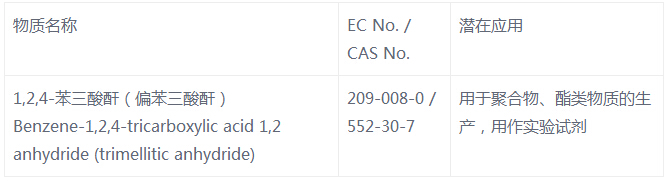 REACH法規歐盟將偏苯三酸酐確定為高度關注物質