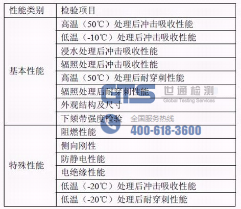 按照GB/T2812-2006 中4.3 規定的方法,經低溫(-20℃)預處理后做沖擊測試,沖擊力值應不超過4900N;帽殼不得有碎片脫落。