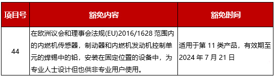 根據(EU)2019/1846,歐盟RoHS附件III新增第44項: