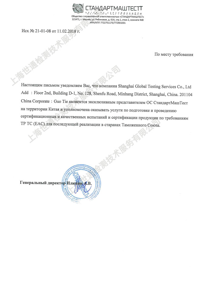 CTAHДAPTMAШTECT 海關聯盟授權