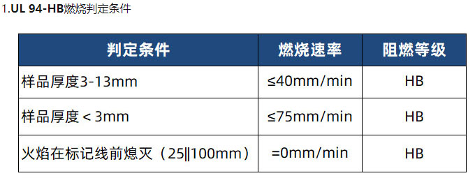 首先介紹下UL94為塑料材料的可燃性能標準,用來評價材料在被點燃后熄滅的能力。根據燃燒速度,燃燒時間,抗滴能力以及滴落物是否燃燒可得到多種的阻燃等級。