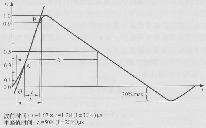 電壓和電流的波前時間和半峰值時間應分別在開路情況下和短路情況下校驗。信號發生器 的輸出或其耦合網絡應與有足夠帶寬和電壓量程的測量系統連接,以便監視開路電莊波形。在 去耦網絡的輸出端上,所有波形參數和信號發生器的其他特性參數相同。